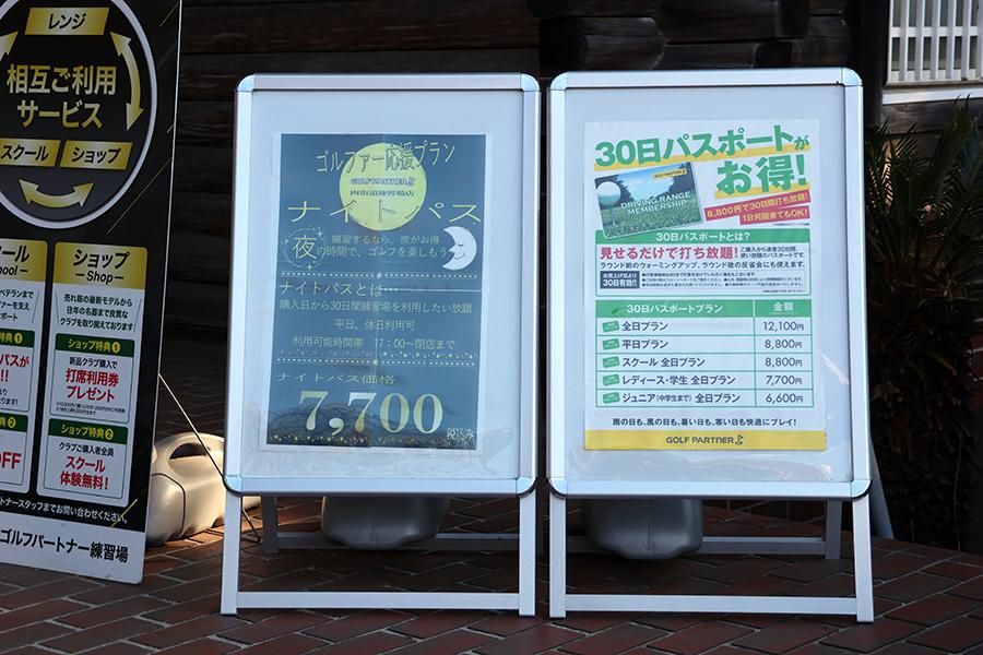 全長220yard・72打席のドライビングレンジを備える同練習場は、「ゴルフパートナー 四街道練習場店」を併設。多彩なプランも特徴的で、12球100円から利用できる早朝のセルフ営業に加え、お得感のある「ナイタープラン」や「30日パスポート」などを設定しています。